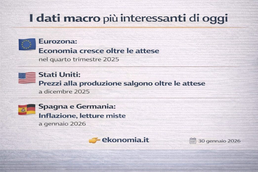 Nel quarto trimestre del 2025 l’economia dell’Eurozona ha registrato una crescita dello 0,3% su base trimestrale, in linea con il trimestre precedente e leggermente superiore alle attese di mercato. Il risultato riflette andamenti differenziati tra le principali economie. La Spagna ha guidato l’espansione con la crescita più sostenuta dell’ultimo anno, superando le previsioni grazie al rafforzamento dei consumi delle famiglie e degli investimenti fissi. I Paesi Bassi hanno mostrato una performance solida, trainata soprattutto dalle esportazioni. Germania (ritorno alla crescita) e Italia hanno entrambe registrato un incremento dello 0,3%, oltre le stime, mentre la Francia si è fermata allo 0,2%, segnando il ritmo trimestrale più debole dal primo trimestre del 2025. Su base annua, il PIL dell’Eurozona è cresciuto dell’1,3%, sopra le attese. Nel complesso del 2025 la crescita ha raggiunto l’1,5%, migliorando nettamente rispetto al 2024 e superando le proiezioni della Commissione europea.